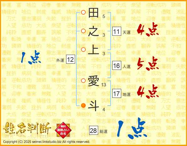 田之上愛斗さんの天運は11画の4点!