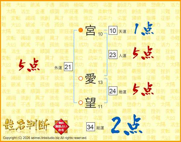 宮愛望さんの総運は34画の2点!