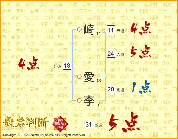 崎愛李さんの総運は31画の5点!