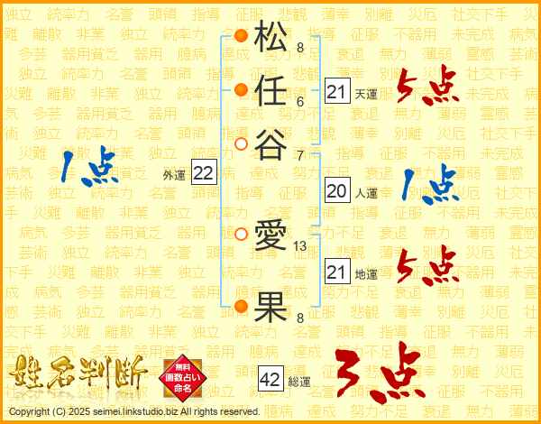 松(8画)任(6画)谷(7画) 愛(13画)果(8画)