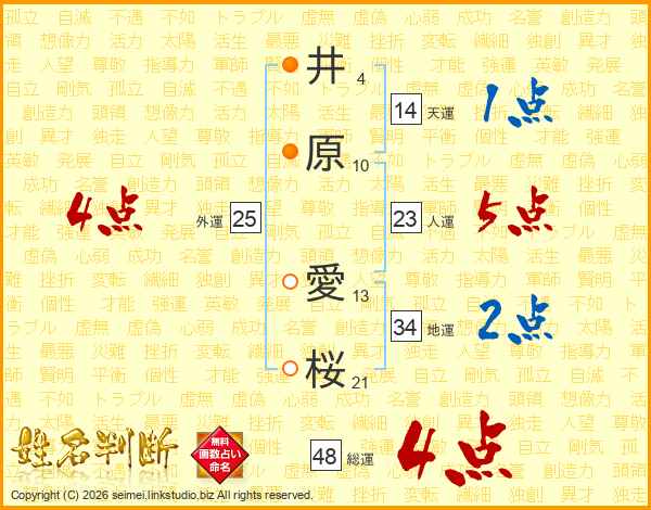 井原愛桜さんの総運は48画の4点!