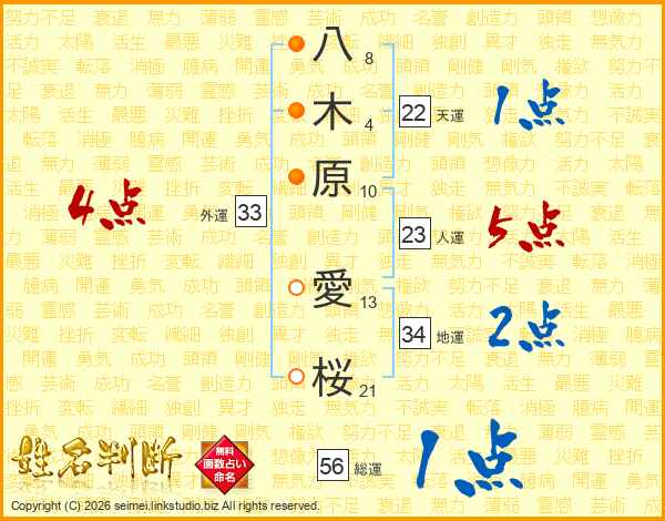 八木原愛桜さんの外運は33画の4点!