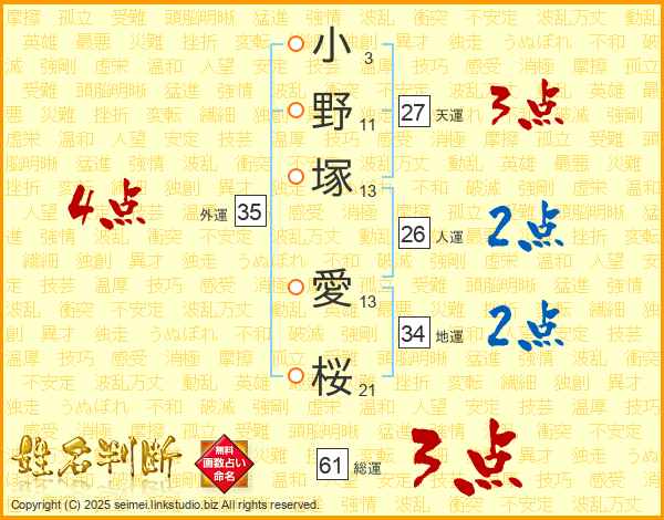 小野塚愛桜さんの外運は35画の4点!