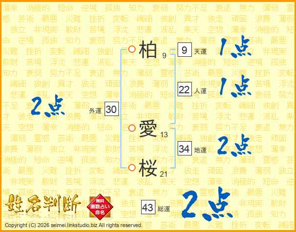 柏愛桜さんの総運は43画の2点!