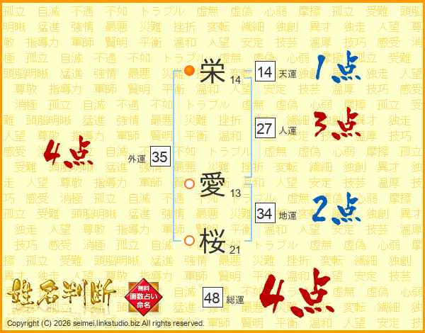栄愛桜さんの外運は35画の4点!