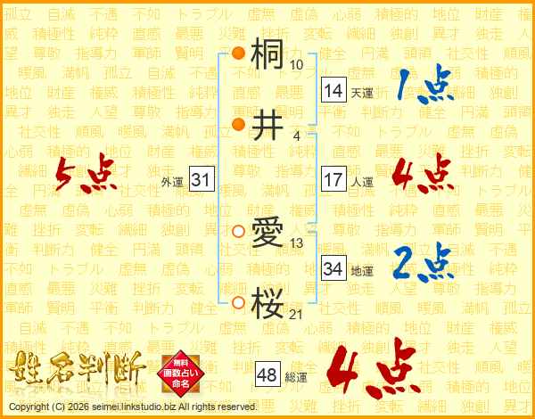桐(10画)井(4画) 愛(13画)桜(21画)