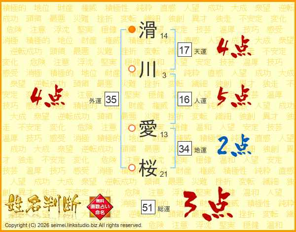 滑川愛桜さんの総運は51画の3点!