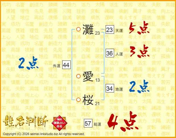 灘愛桜さんの総運は57画の4点!