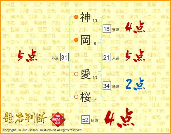 神岡愛桜さんの総運は52画の4点!