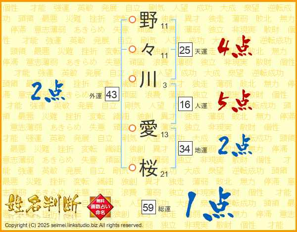 野々川愛桜さんの天運は25画の4点!