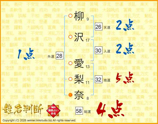 柳沢愛梨奈さんの天運は26画の2点!