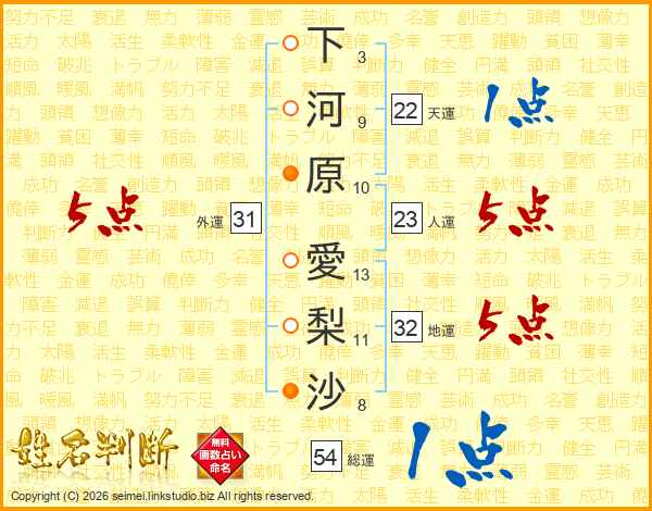 下河原愛梨沙さんの総運は54画の1点!