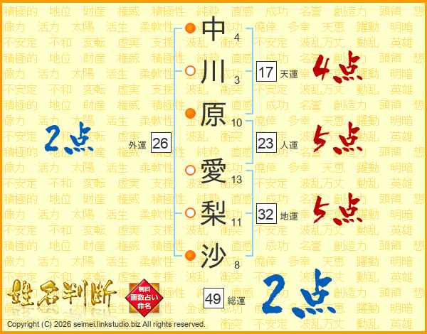 中川原愛梨沙さんの総運は49画の2点!