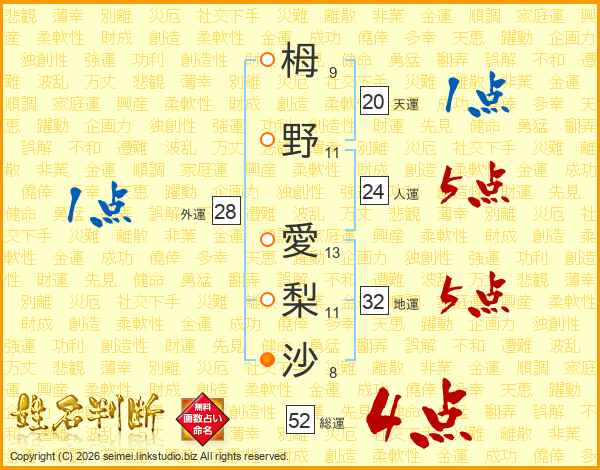 栂野愛梨沙さんの総運は52画の4点!