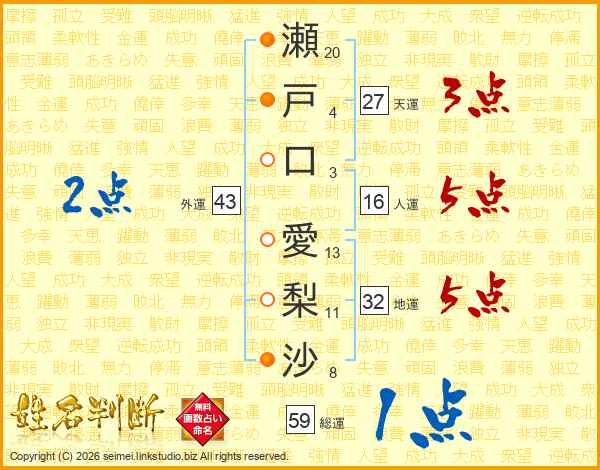 瀬戸口愛梨沙さんの外運は43画の2点!