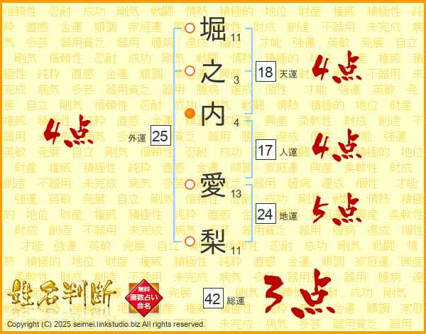 堀之内愛梨さんの外運は25画の4点!
