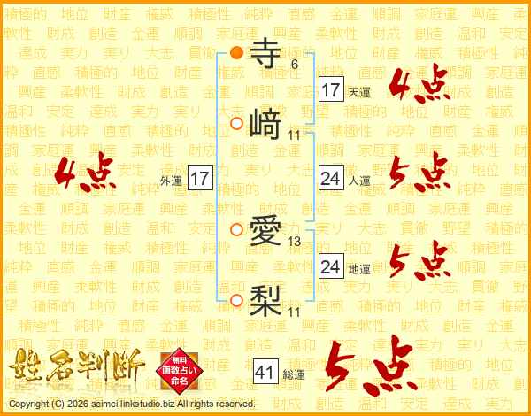 寺﨑愛梨さんの外運は17画の4点!