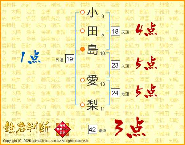 小田島愛梨さんの人運は23画の5点!