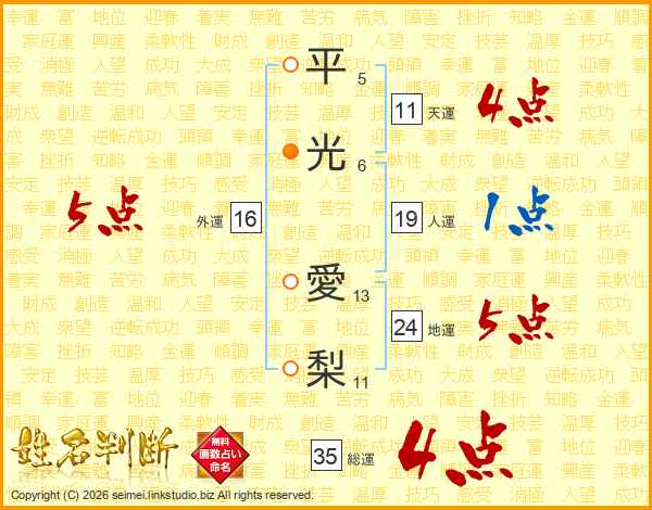 平光愛梨さんの総運は35画の4点!