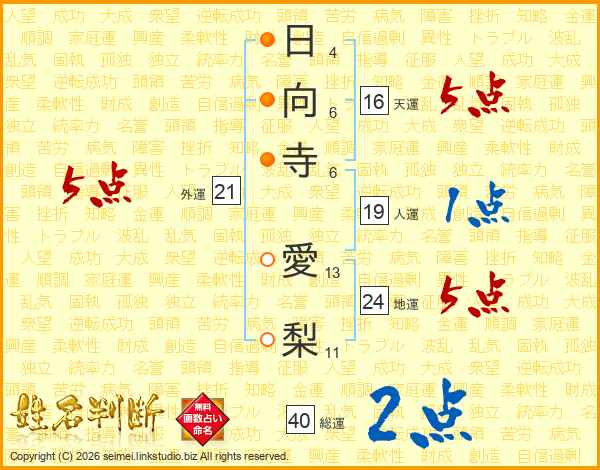 日向寺愛梨さんの外運は21画の5点!
