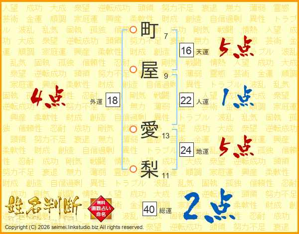 町屋愛梨さんの総運は40画の2点!