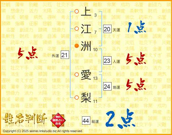 上江洲愛梨さんの総運は44画の2点!