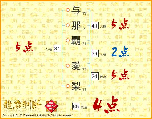 与那覇愛梨さんの天運は41画の5点!