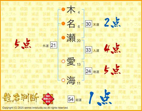 木名瀬愛海さんの外運は21画の5点!