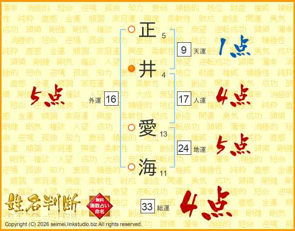 正井愛海さんの総運は33画の4点!