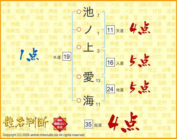 池ノ上愛海さんの天運は11画の4点!