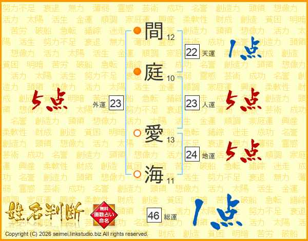 間庭愛海さんの総運は46画の1点!