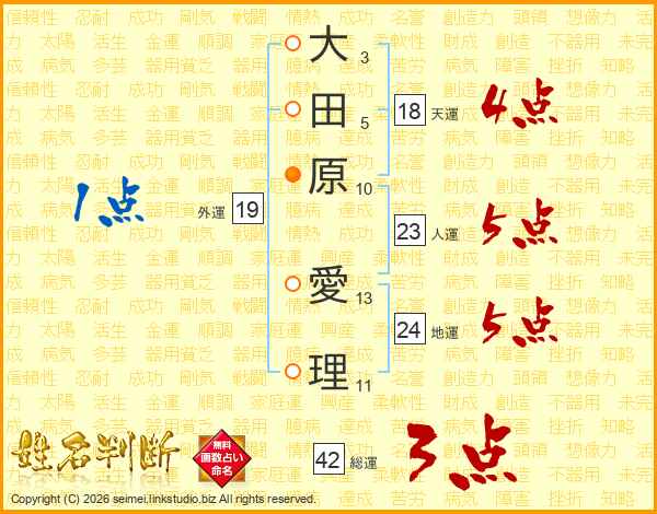 大田原愛理さんの総運は42画の3点!