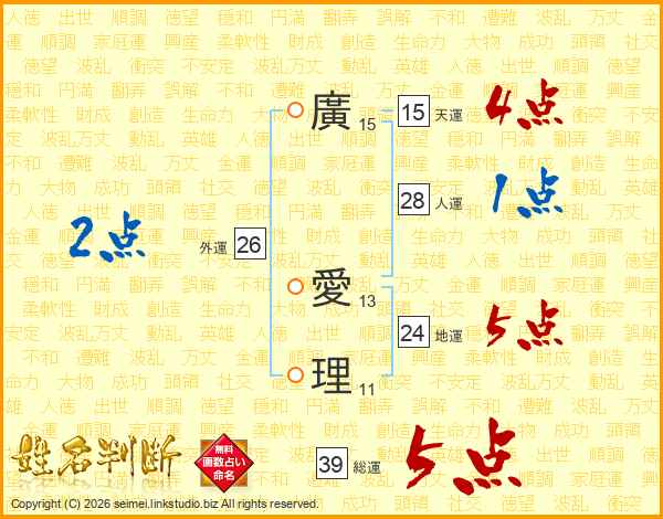 廣愛理さんの総運は39画の5点!