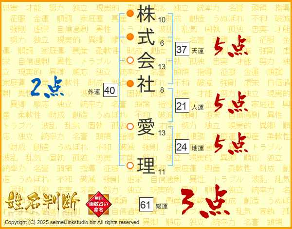 株(10画)式(6画)会(13画)社(8画) 愛(13画)理(11画)
