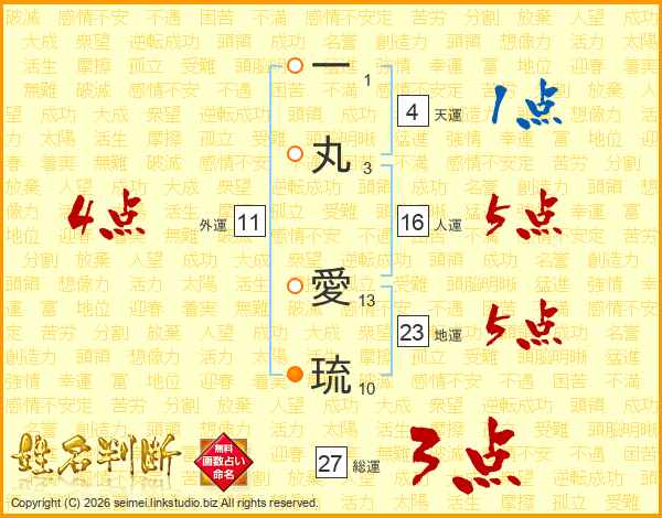 一丸愛琉さんの総運は27画の3点!