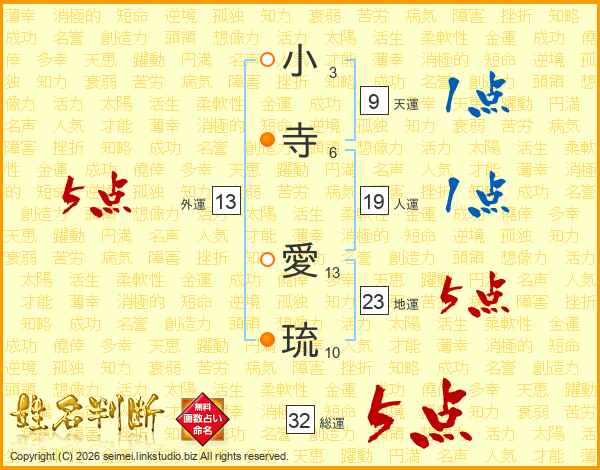 小(3画)寺(6画) 愛(13画)琉(10画)