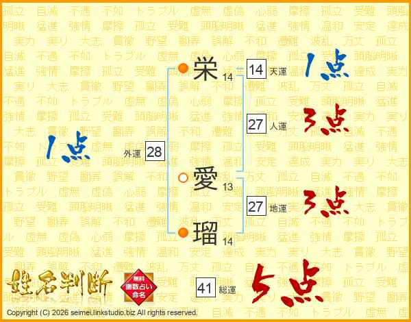 栄(14画) 愛(13画)瑠(14画)
