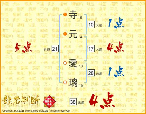 寺元愛璃さんの総運は38画の4点!