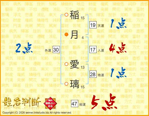 稲月愛璃さんの総運は47画の5点!