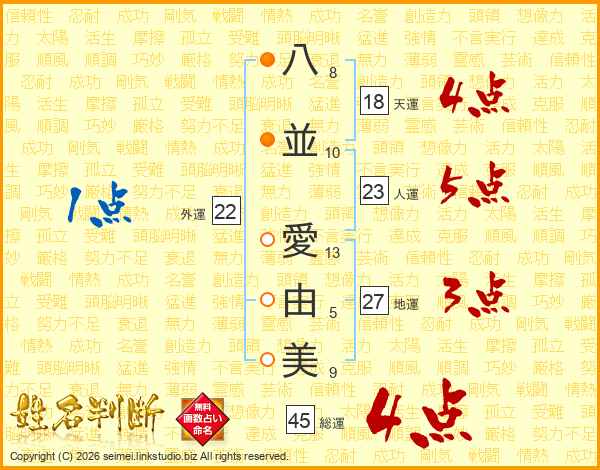 八並愛由美さんの総運は45画の4点!