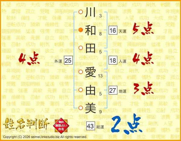 川和田愛由美さんの総運は43画の2点!
