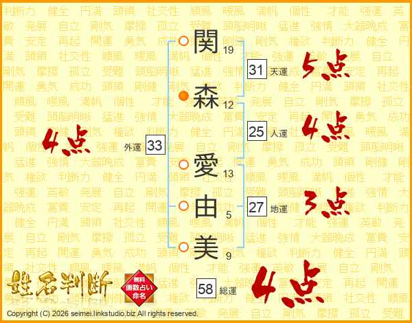 関森愛由美さんの総運は58画の4点!