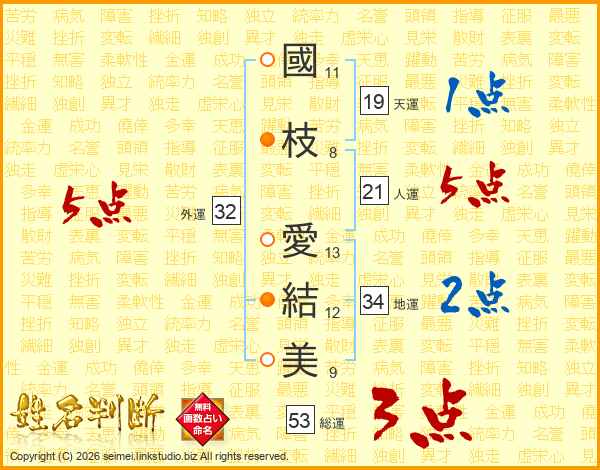 國枝愛結美さんの外運は32画の5点!