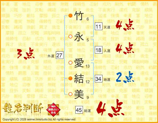 竹永愛結美さんの総運は45画の4点!