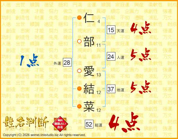 仁部愛結菜さんの総運は52画の4点!