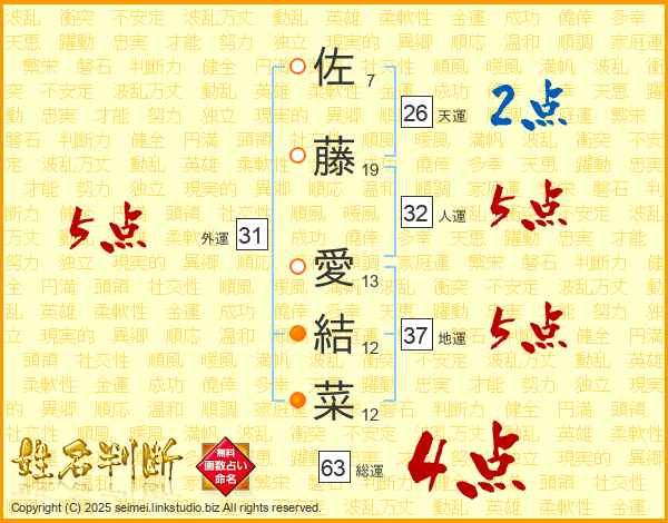 佐藤愛結菜さんの総運は63画の4点!