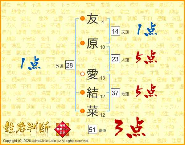 友原愛結菜さんの総運は51画の3点!