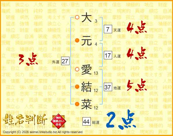 大元愛結菜さんの総運は44画の2点!