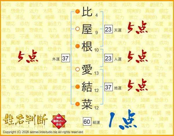 比屋根愛結菜さんの外運は37画の5点!