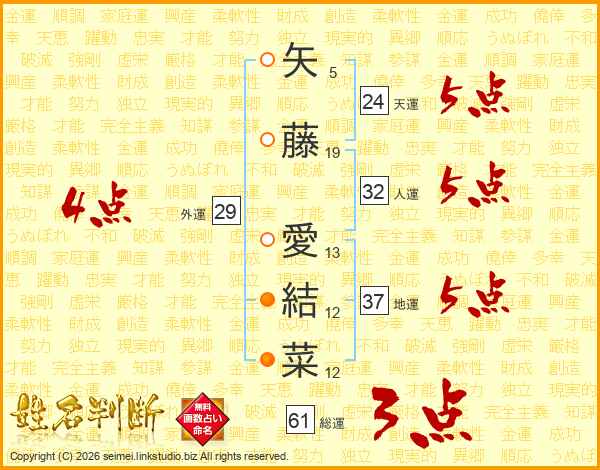 矢藤愛結菜さんの地運は37画の5点!